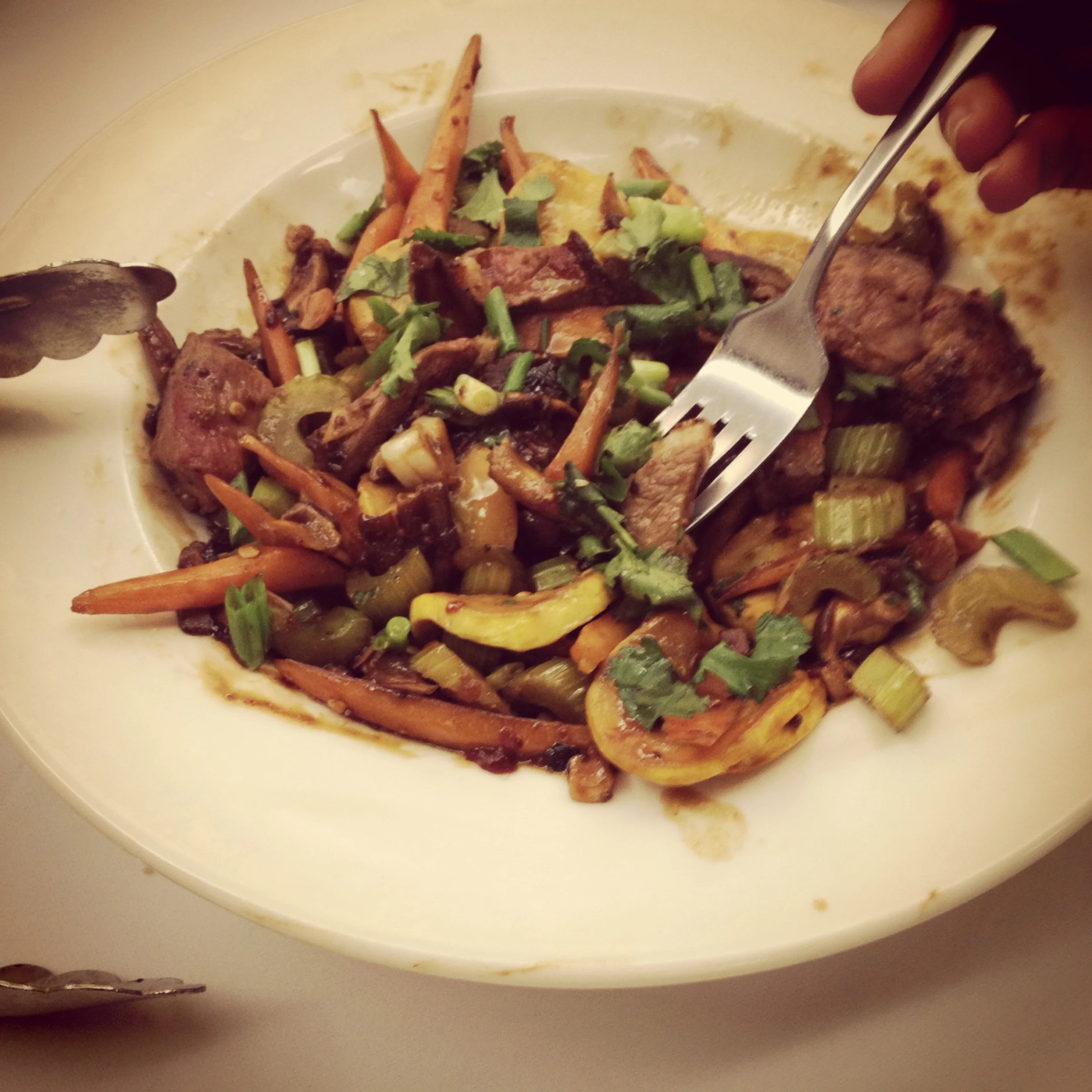 2 cups shredded kale, brussels sprouts, green or red cabbage
